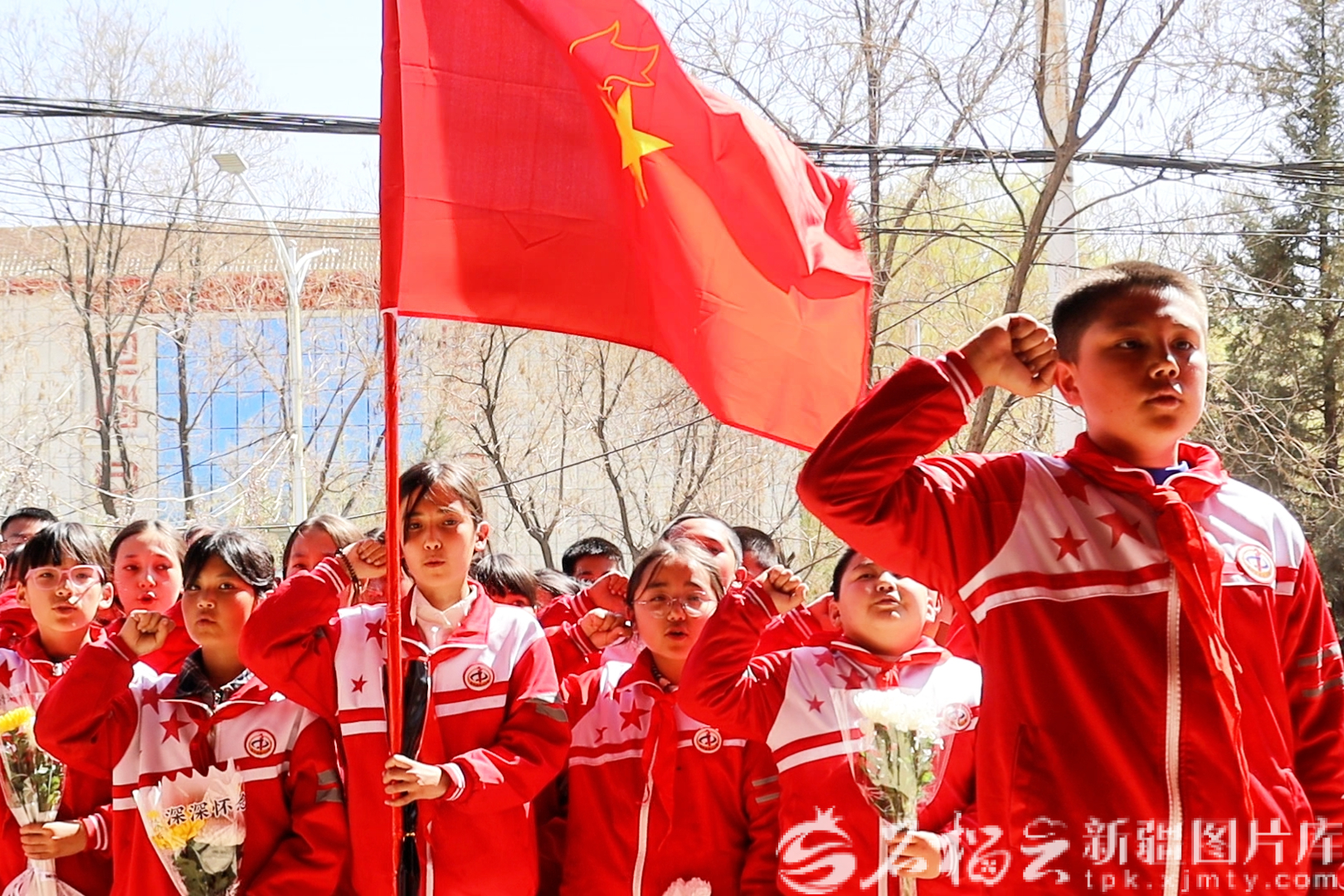 4月2日,乌鲁木齐市第五十三小学组织一年级、五年级学生代表前往乌鲁木齐市烈士陵园,开展祭扫暨新队员入队仪式。苍松翠柏间,五年级少先队员郑重地为60名新队员佩戴上鲜艳的红领巾。一年级四班学生摆宇辰坚定地说:“我们要以先烈为榜样,努力学习,奋勇争先。”