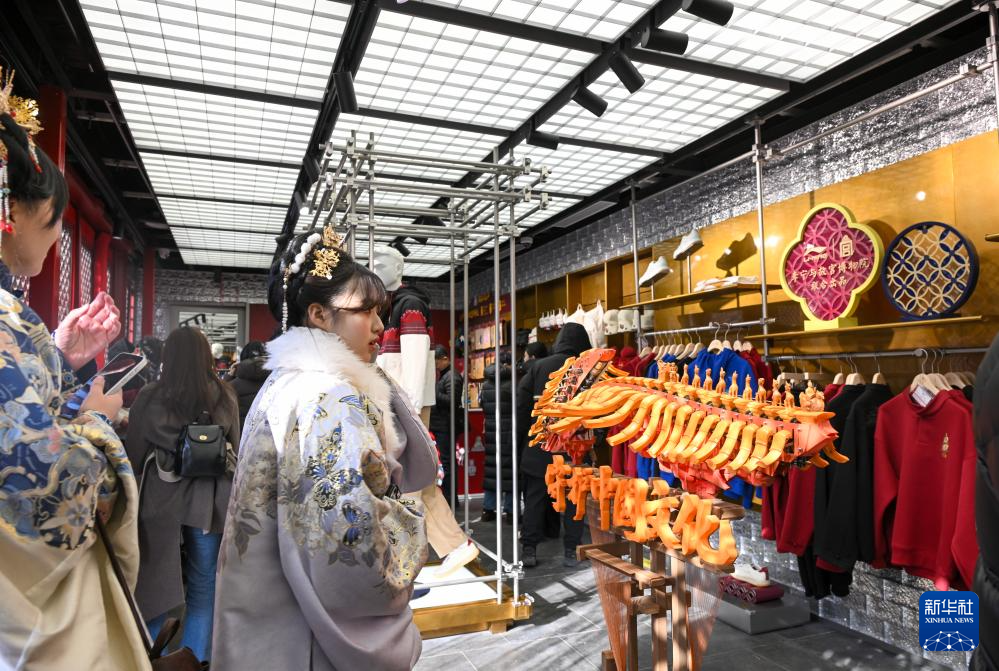 1月24日,游客在故宫文创空间内选购商品。