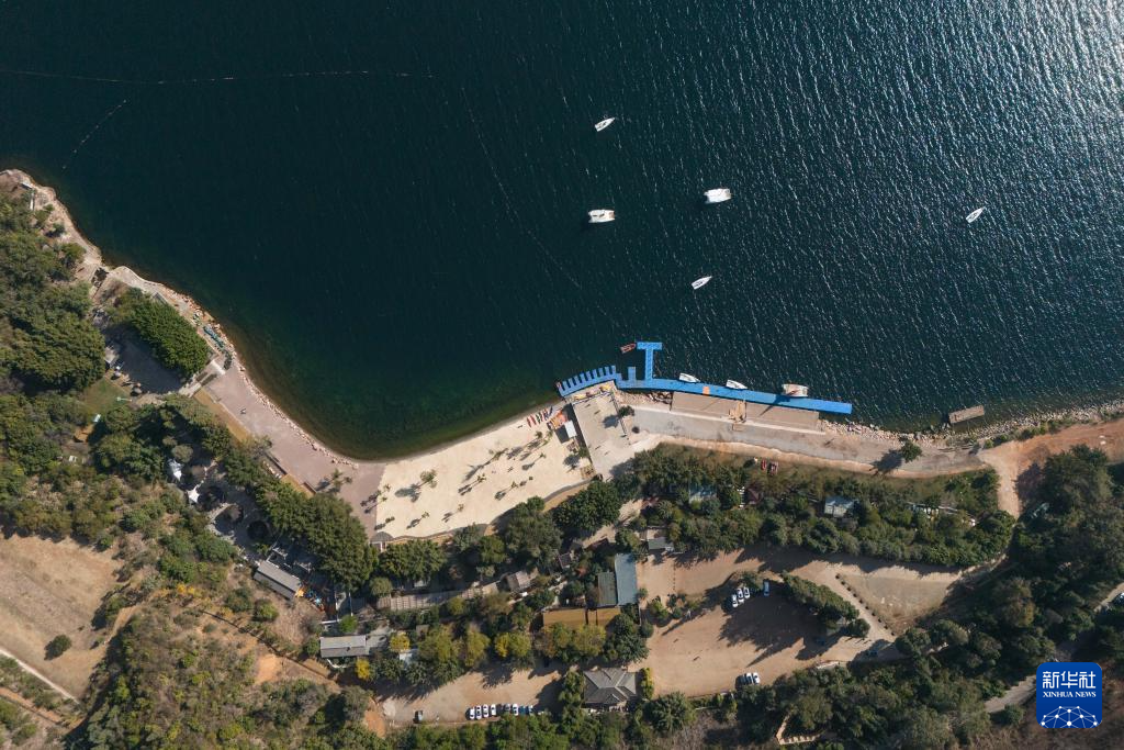 1月27日在云南省玉溪市拍摄的抚仙湖一景(无人机照片)。新华社记者 高咏薇 摄