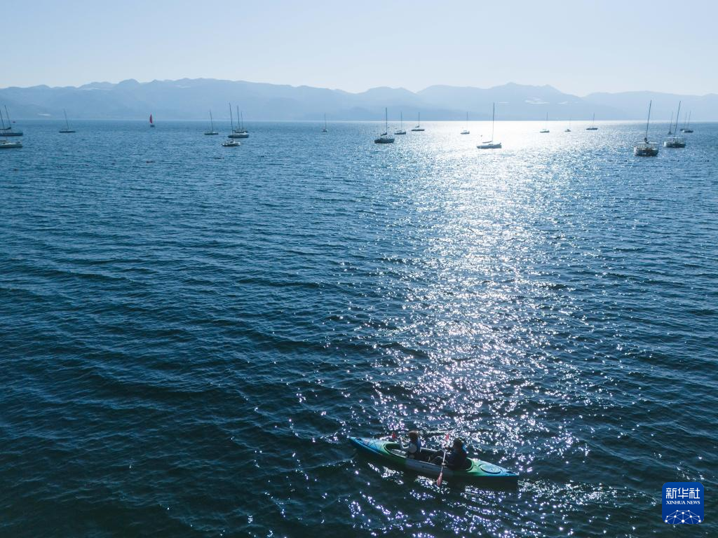 1月27日,游客在云南省玉溪市抚仙湖划船游玩。新华社记者 高咏薇 摄