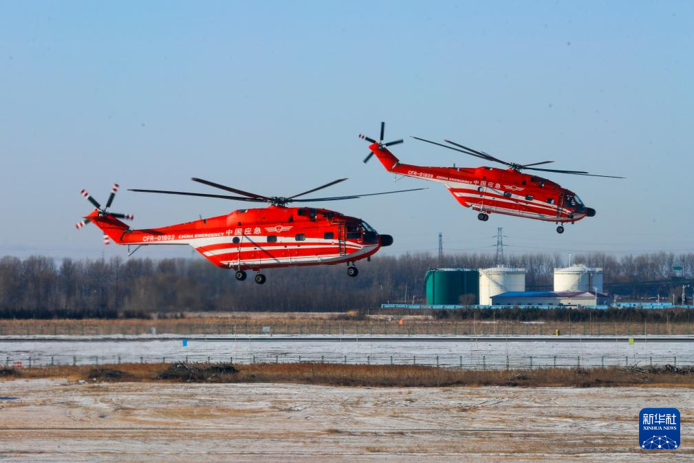 1月29日,在空投实战化训练现场,救援直升机增速飞向空投预定地点。新华社发(闫安童摄)