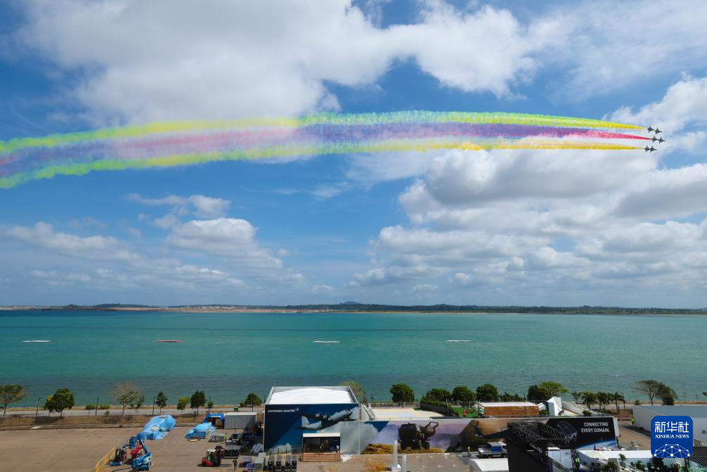 1月30日上午,中国空军八一飞行表演队在新加坡樟宜机场海面上空展开空中特技动作飞行。新华社发(朱姜海摄)