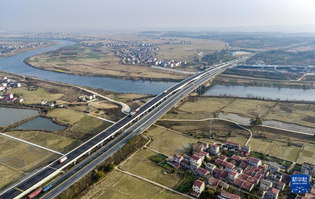 1月31日拍摄的江西樟树至吉安高速公路(无人机照片)。新华社发(王宗豪 摄)