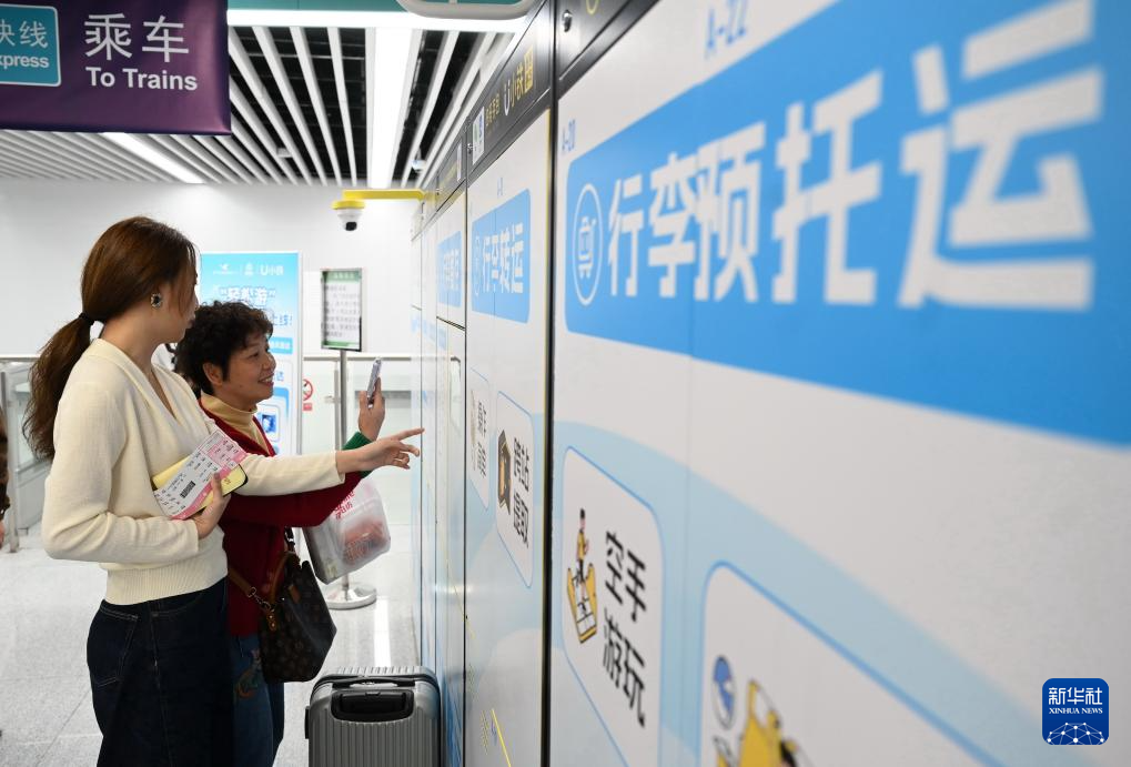 2月6日,在滨海快线福州火车站的厦门航空福州空轨联运城市服务中心,旅客办理行李寄送。新华社记者 林善传 摄