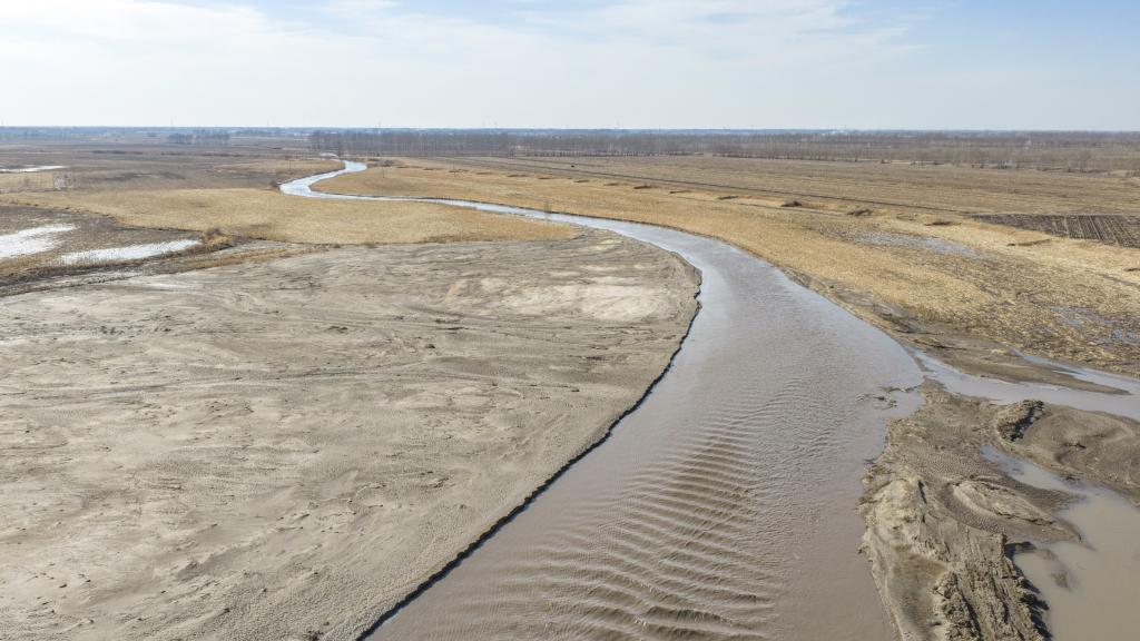 2025年4月8日拍摄的西辽河(无人机照片)。新华社记者 连振 摄