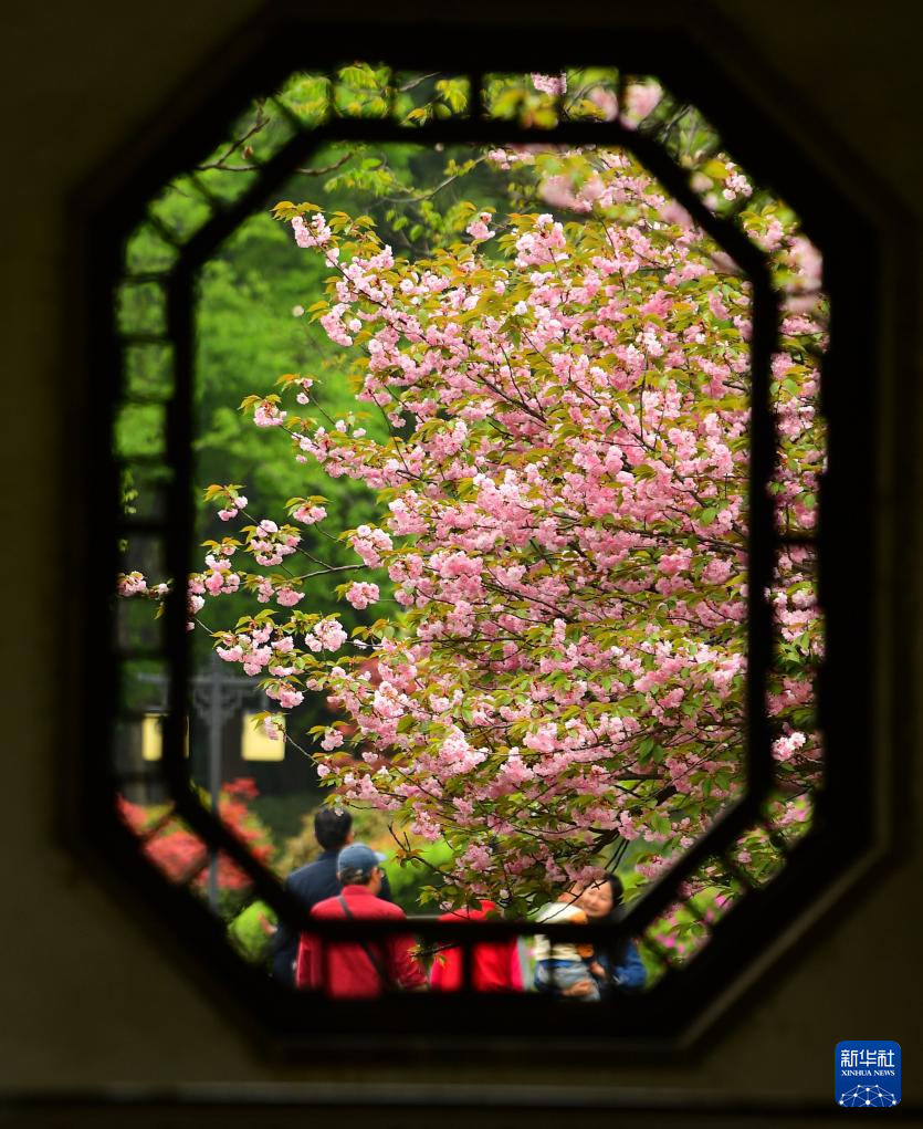 4月11日,游客在江苏扬州何园赏花拍照。新华社发(齐立广摄)