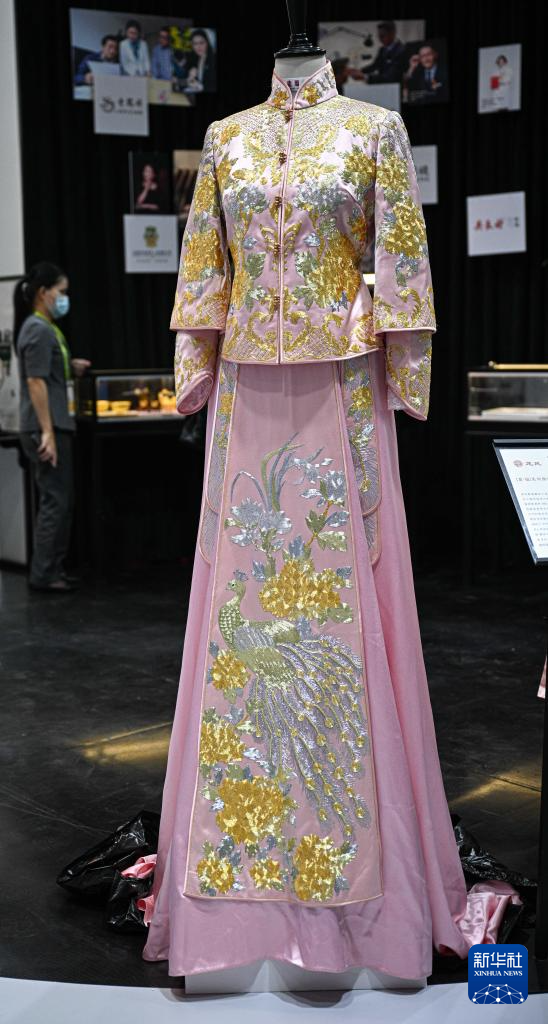 4月11日在第六届消博会主宾省——上海展台拍摄的旗袍。新华社记者 蒲晓旭 摄