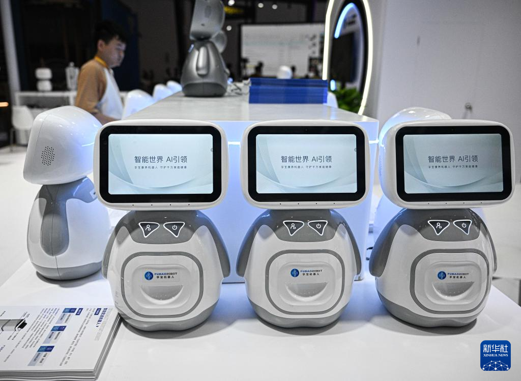 4月11日在第六届消博会主会场拍摄的康养陪伴机器人。新华社记者 蒲晓旭 摄