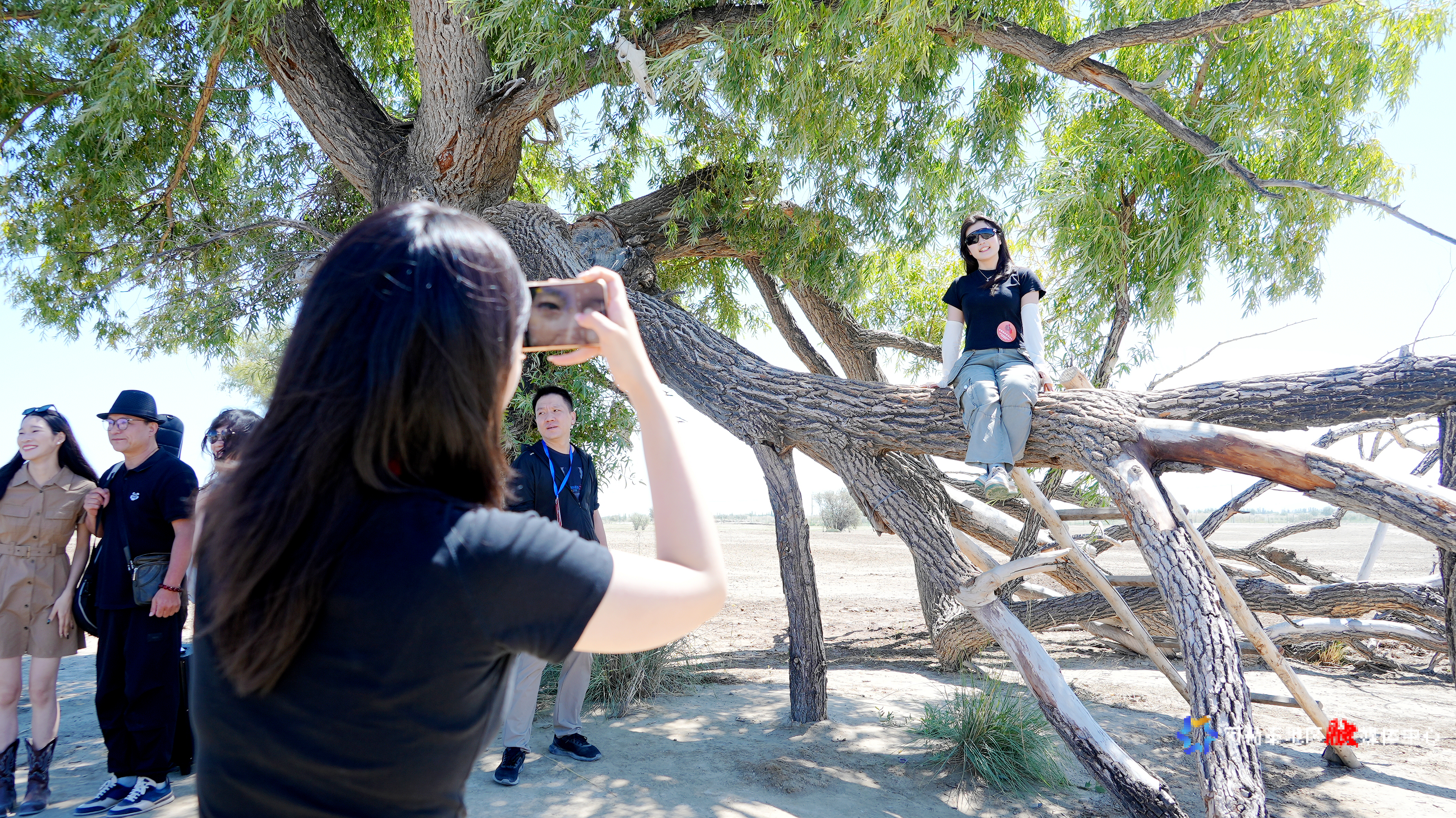 在巴太树前的跑道上,姑娘追、马背拾银、马上杂技等马术表演刺激着采访团成员的神经。走到巴太树前,大家或爬上树干比着姿势拍照留念,或站在树下跟着演员与音乐跳起《黑走马》,电视剧中的情节每天都在这里“复刻”。