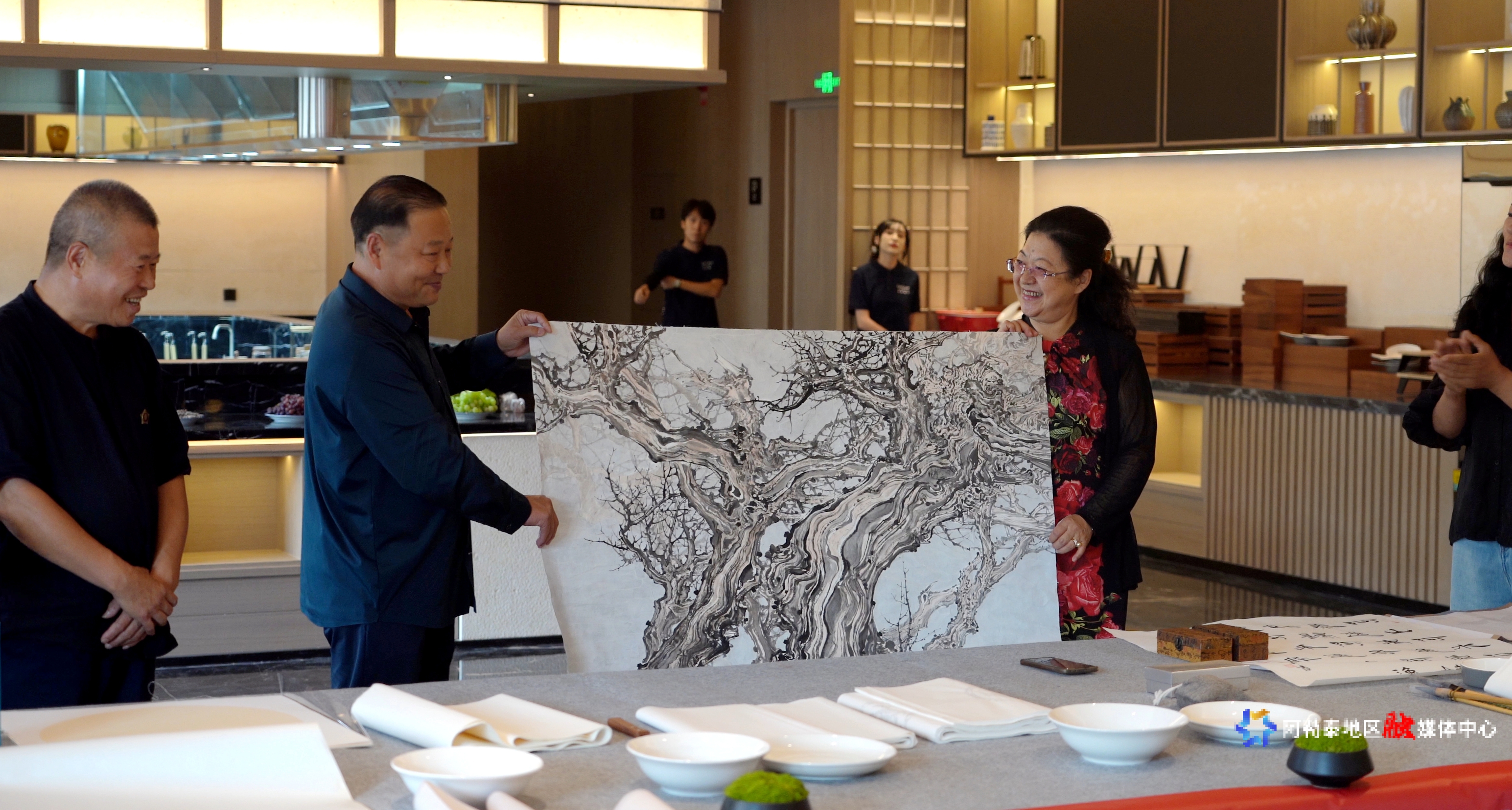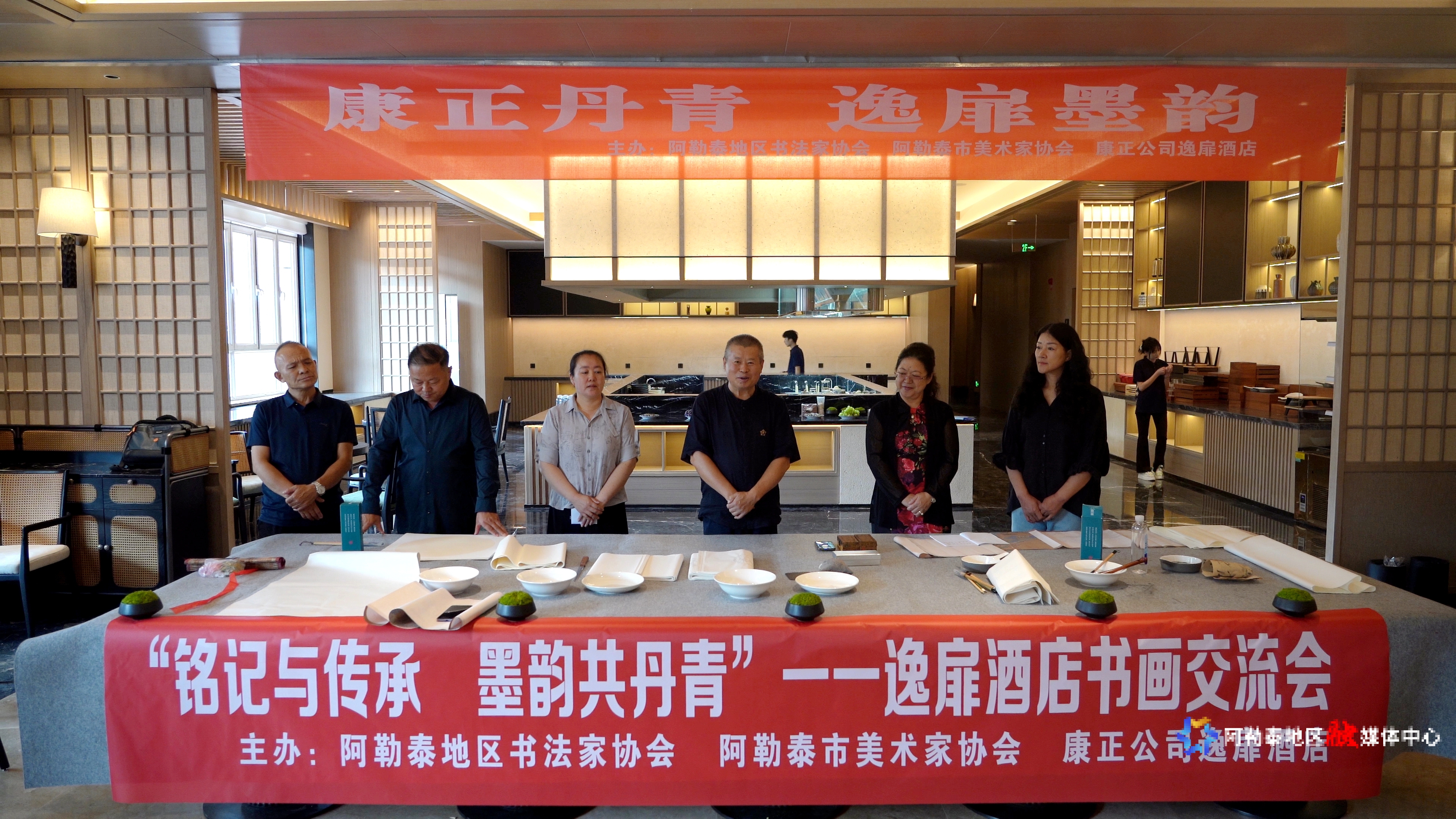 牢记艰苦卓绝的奋战,迈上昂扬奋进的征程。在这个特殊的日子里,地区书法家协会、阿勒泰市美术家协会与阿勒泰地区康正房地产开发有限公司逸扉酒店携手,举办“铭记与传承 墨韵共丹青”书画交流会,以艺术之笔铭记历史,为企业发展注入文化动能,搭建起艺术与企业深度交融的新平台。