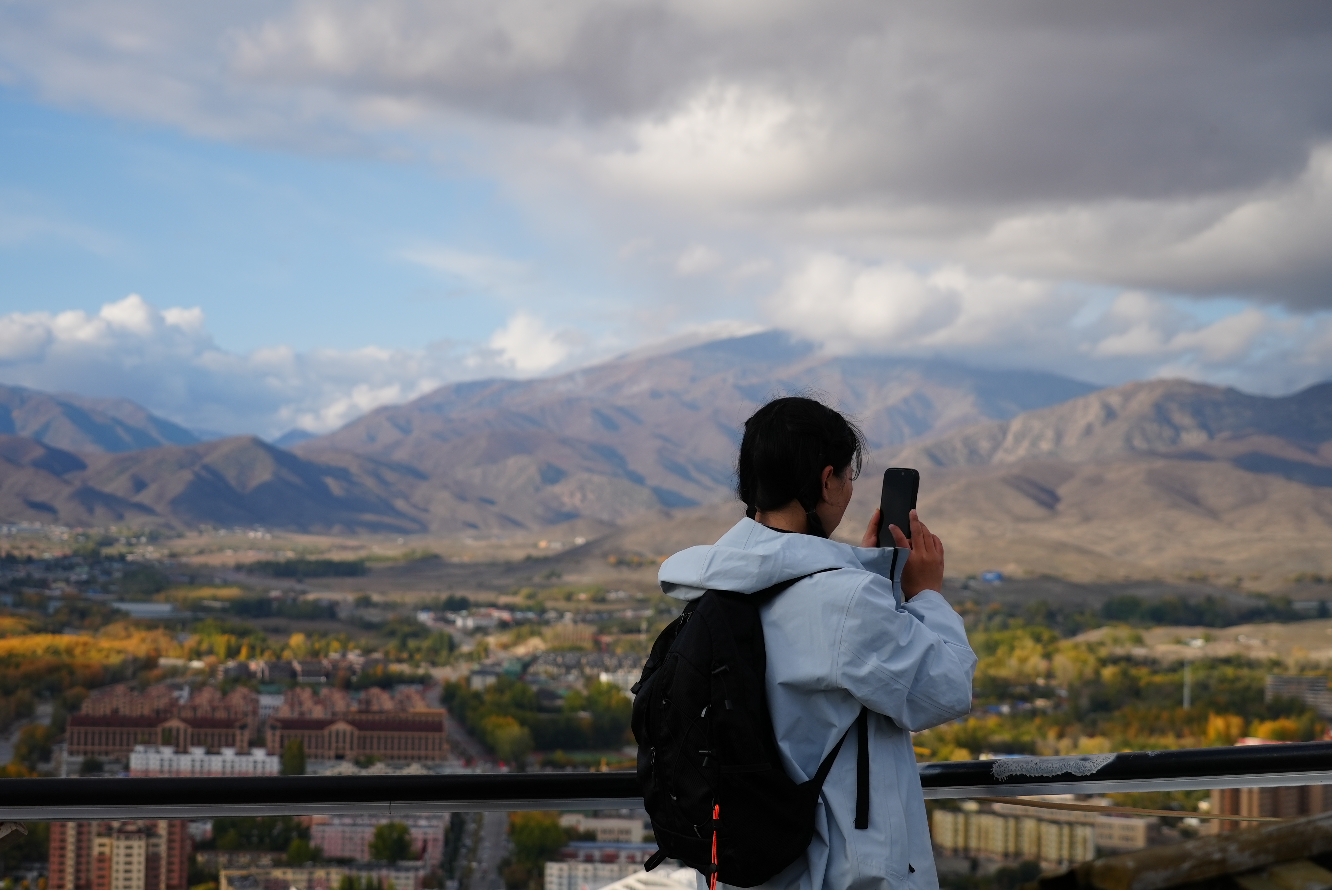 登临驼峰,可见松针墨绿、白桦金黄、野果嫣红,在秋阳下构成一幅流动的油画。山顶俯瞰,阿勒泰市区全景尽收眼底,秋色与城市风貌相映成趣。