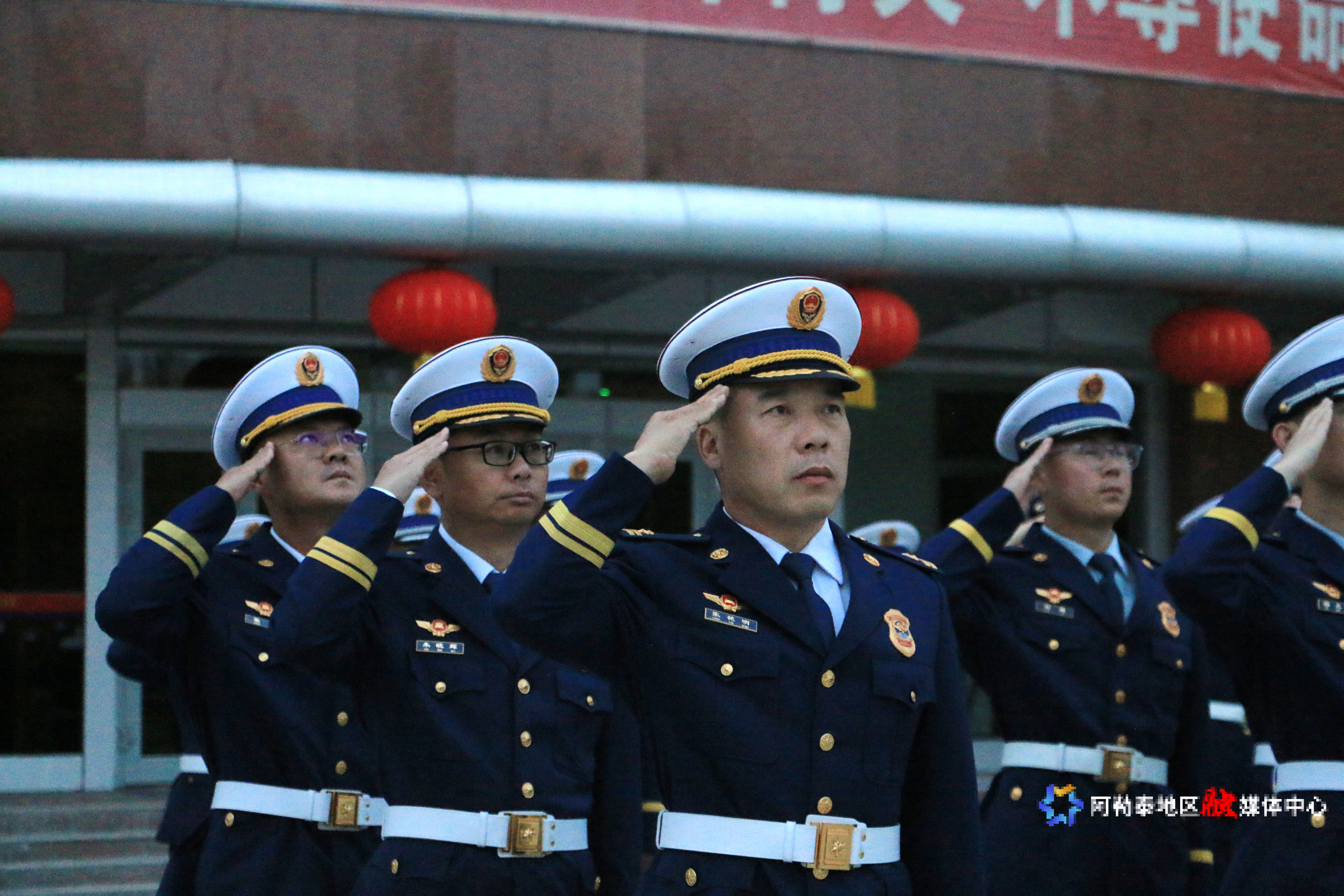 在阿勒泰地区森林消防支队营区,全体指战员身着整齐制服,隆重举行升国旗仪式,以铮铮誓言与昂扬姿态,向祖国致敬,向边疆告白。