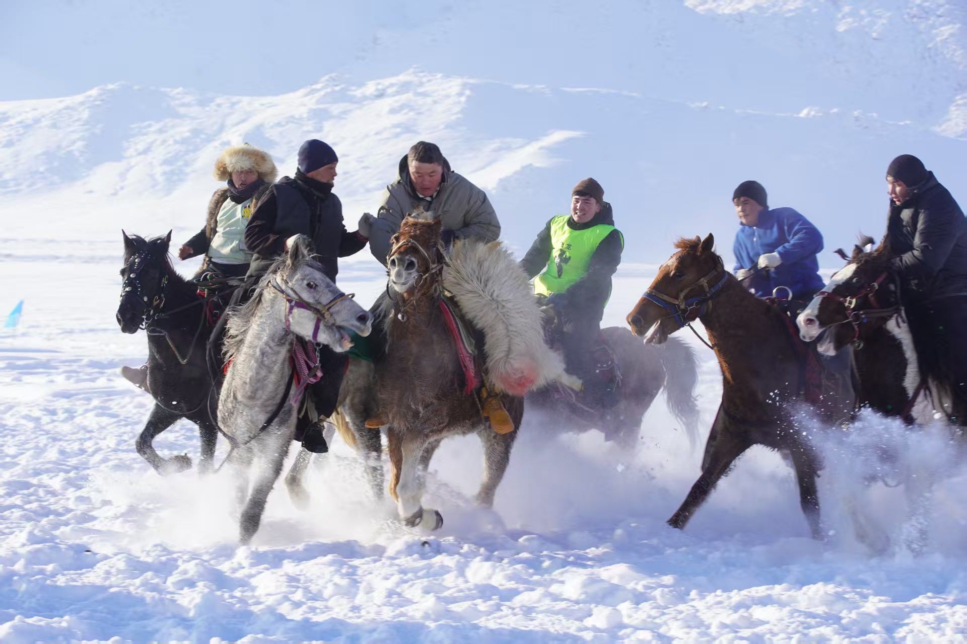 富蕴县铁买克乡举行2025—2026年冰雪旅游文化暨“群众村晚”文体活动骑马比赛现场。通讯员 阿吴英·哈得勒别克摄
