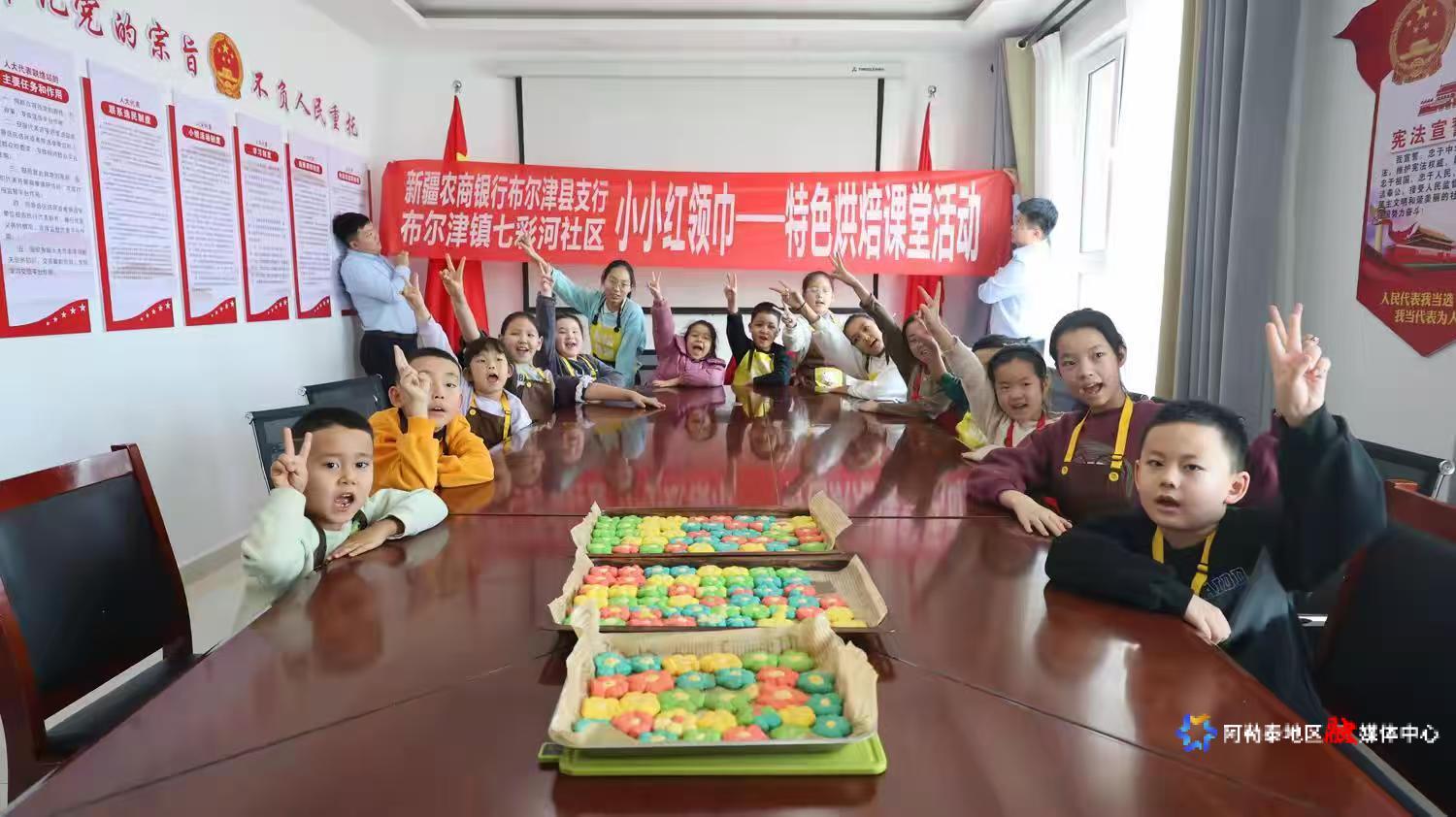 新疆农商银行布尔津县支行开展冰雪微课堂活动,孩子们进行烘焙体验。