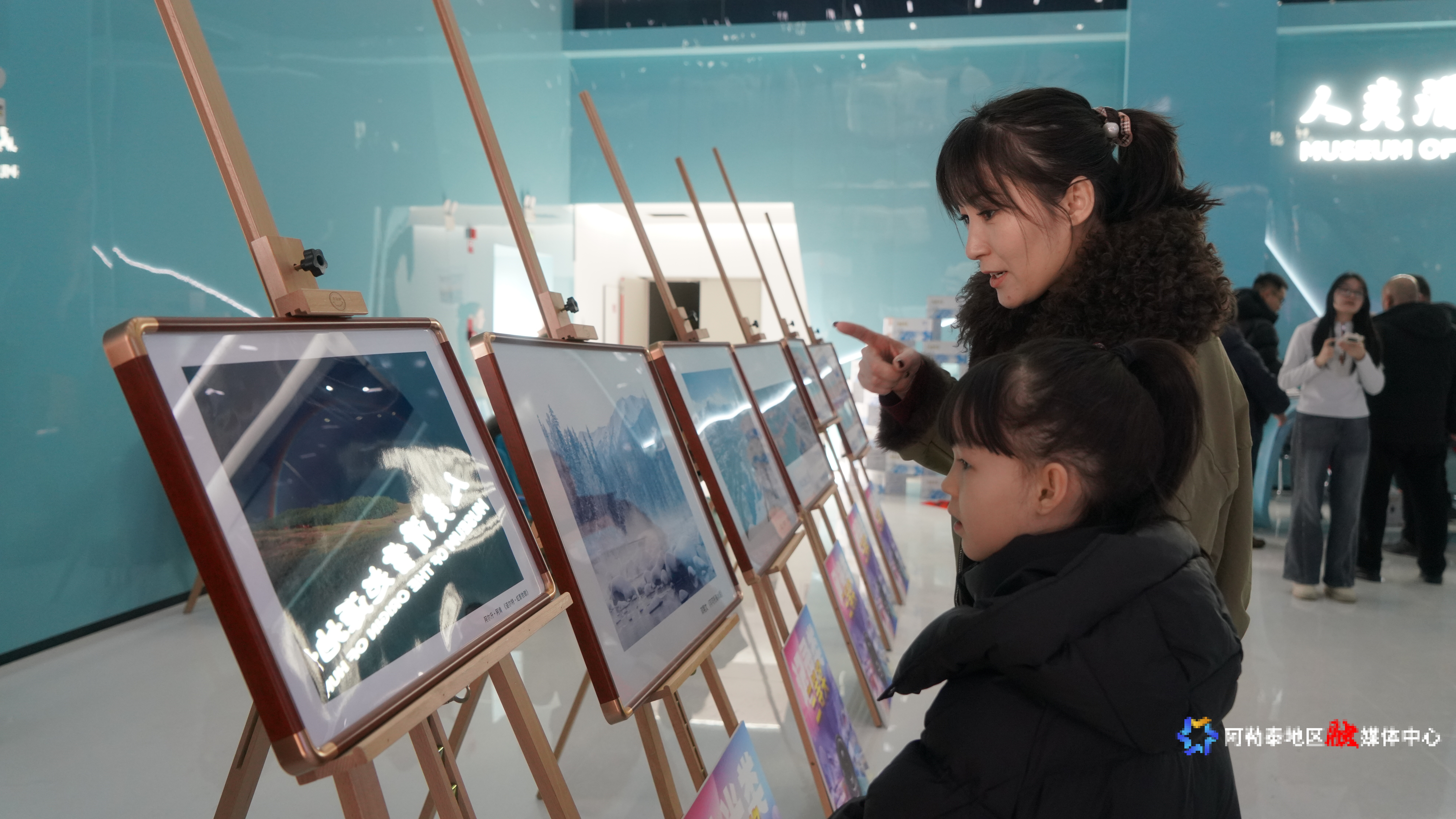 参观人员共同欣赏“我的阿勒泰·冰雪视觉展”摄影大赛获奖及入展作品。
