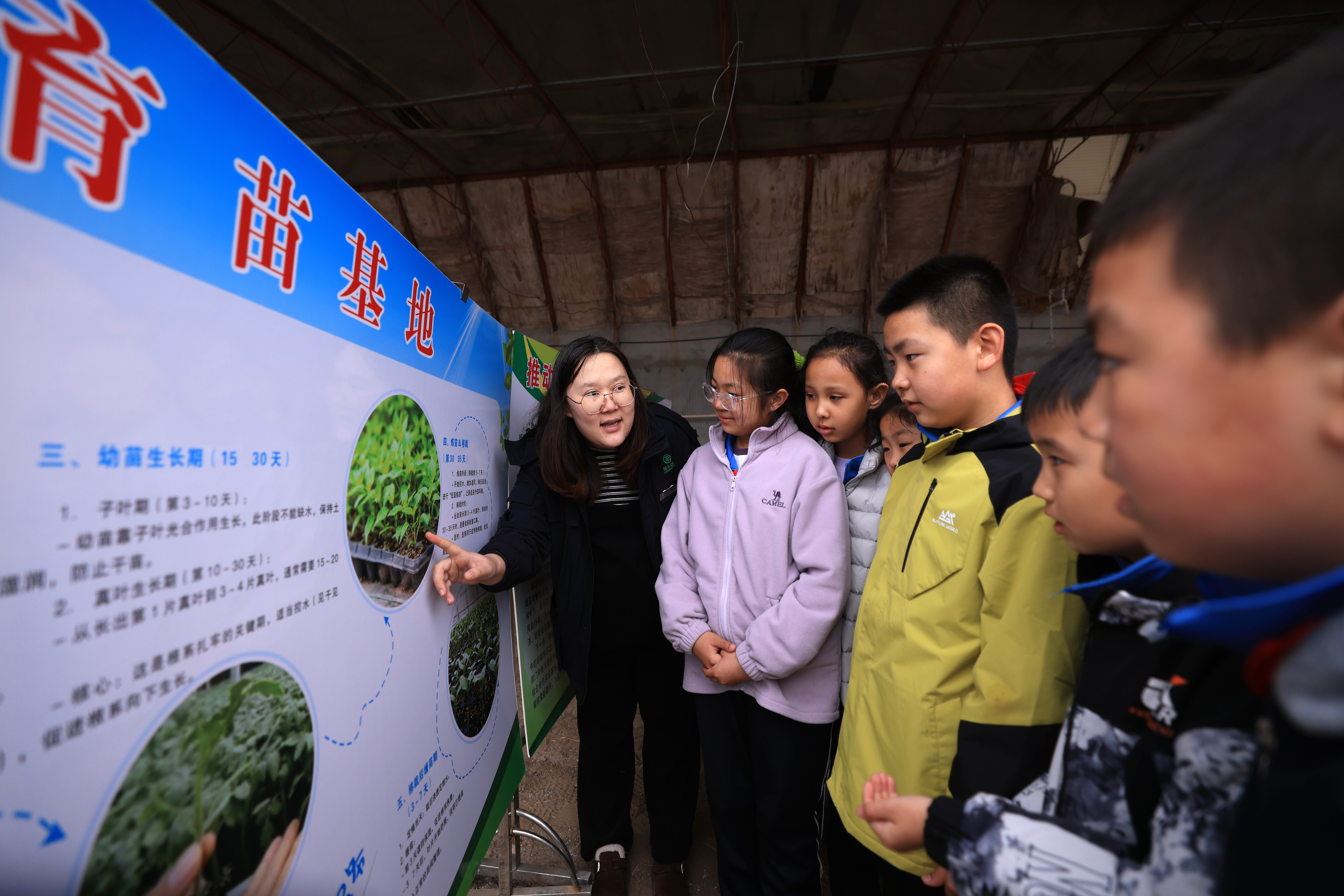 活动中,孩子们在农技人员的指导下学习松土、播种,聆听农业科普讲解。一粒粒种子、一株株幼苗,成为生动的科普教材,孩子们“零距离”接触现代农业,在实践中增长知识、亲近自然,享受大棚里的“耕读童趣”。