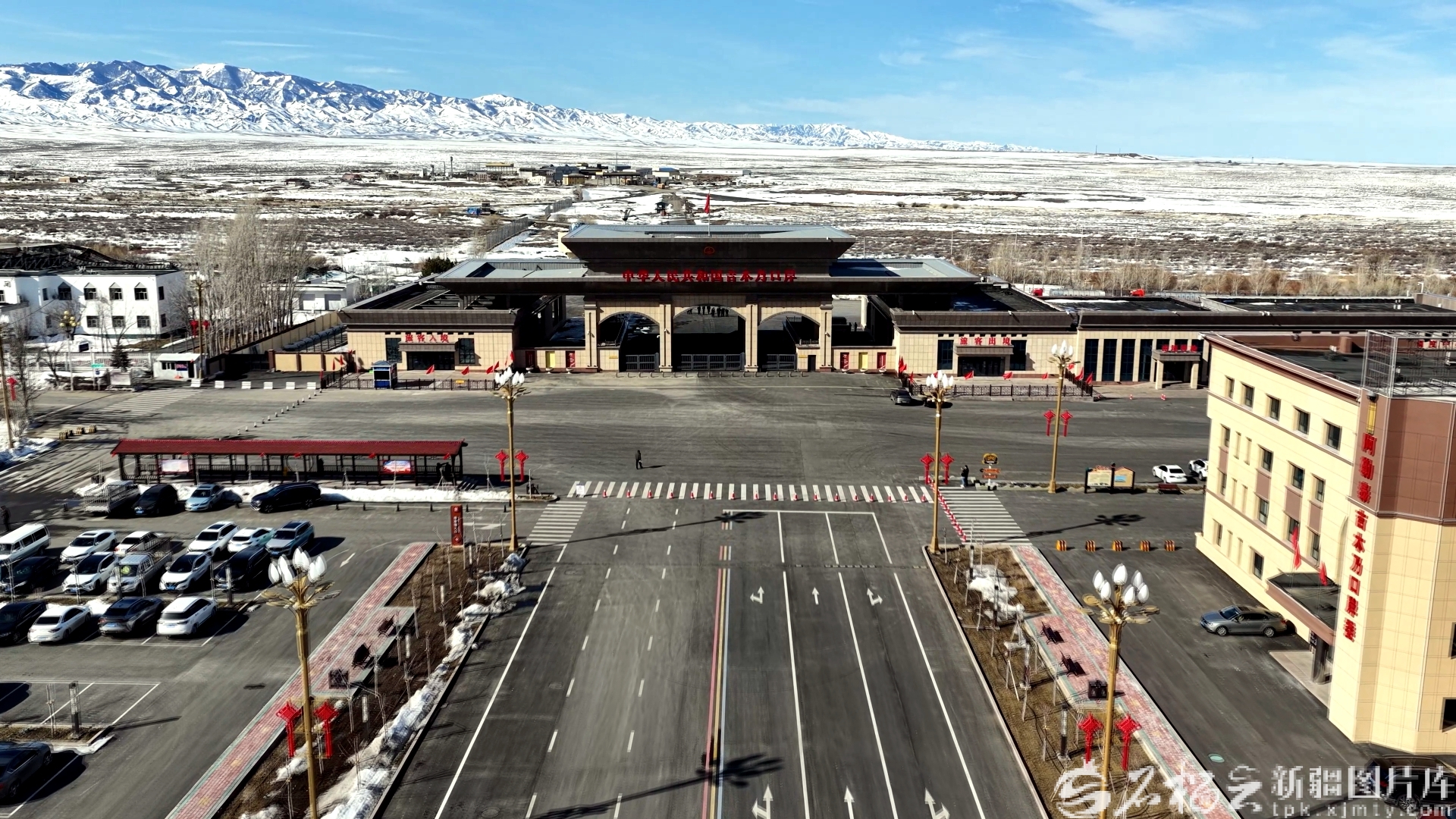 4月1日,无人机拍摄的吉木乃口岸。这里拥有“一关通四国”的区位优势,出入境越来越高效便捷。陈亚伟 摄
