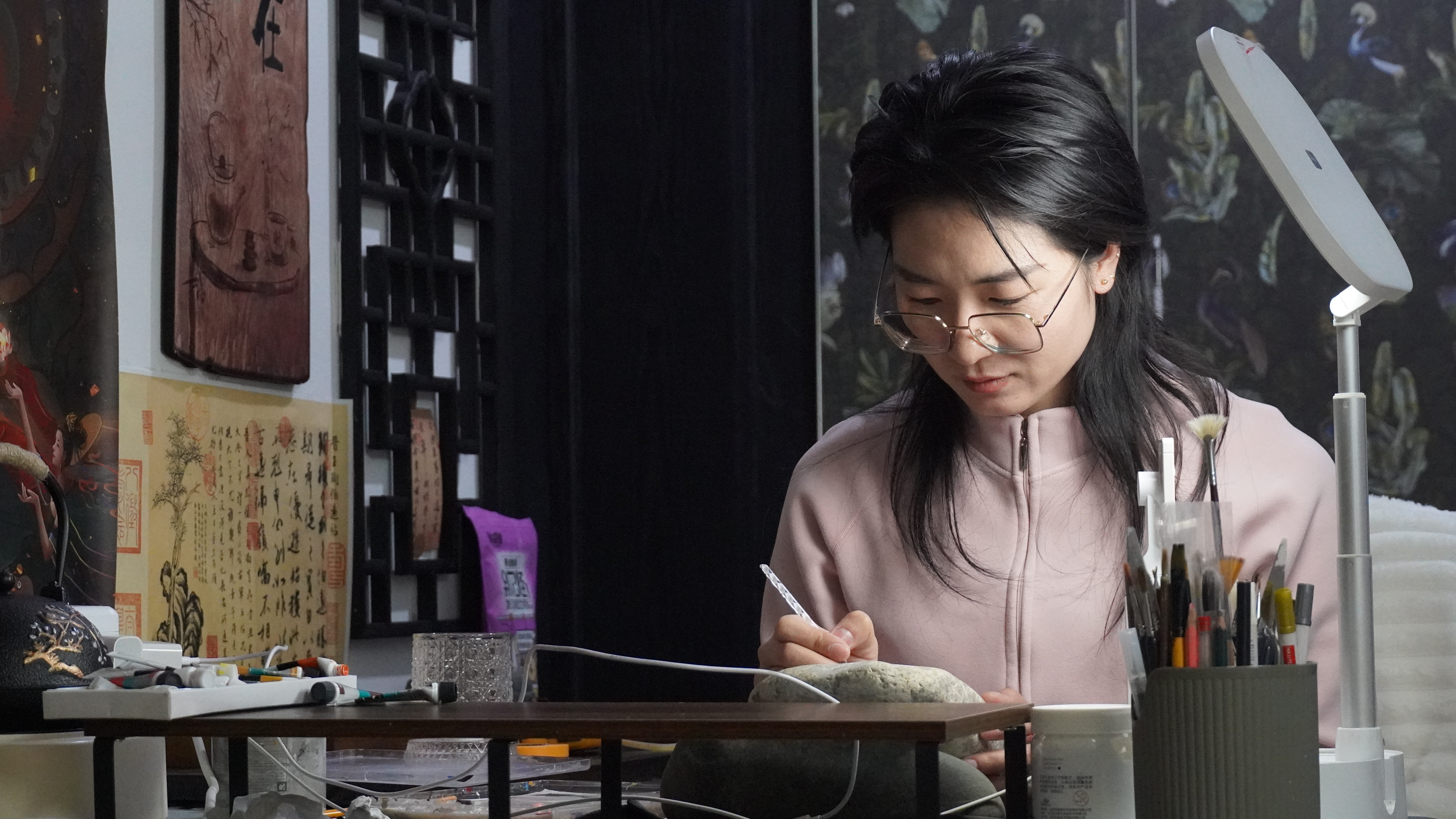 刘莉萍老师的石头画作品。通讯员 李明思摄