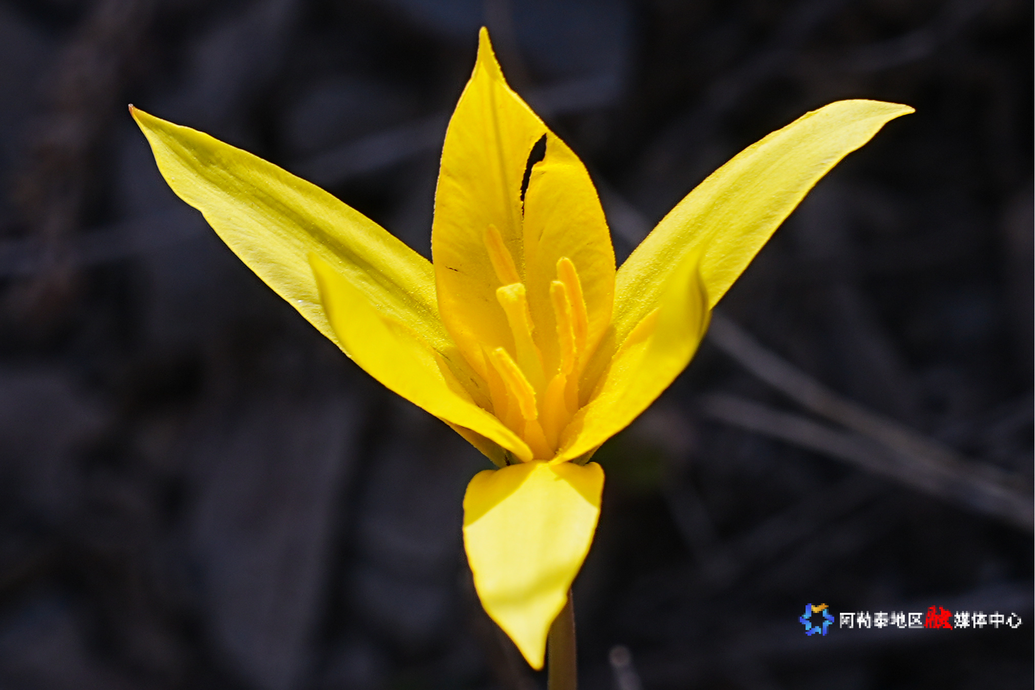阿勒泰地区复杂多样的地形地貌,孕育了从山地到荒漠的多元生态,恰好适配野生郁金香的生长习性。不同于人工栽培的观赏品种,这些野生郁金香偏爱干旱贫瘠的砾石质土壤,甚至能扎根在岩石缝隙之中,多生长在海拔1300—2600米的向阳坡地。花朵明黄鲜亮,花茎纤细直立,狭长叶片带着原生的硬朗质感,在荒野间透出独有的粗犷傲气。