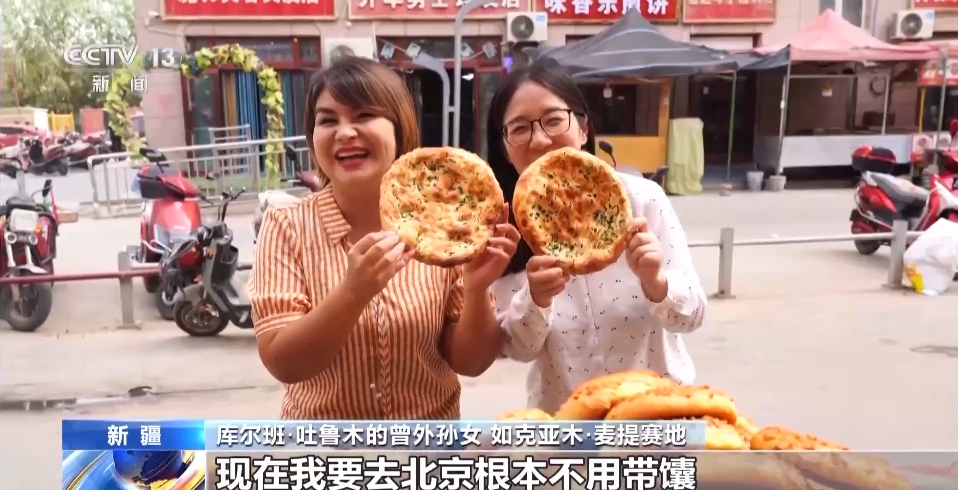 库尔班·吐鲁木的曾外孙女 如克亚木·麦提赛地:现在我要去北京根本不用带馕,有时候偶尔带个馕,就当礼物送朋友。于田县的老百姓有很多出行选择,特别方便。