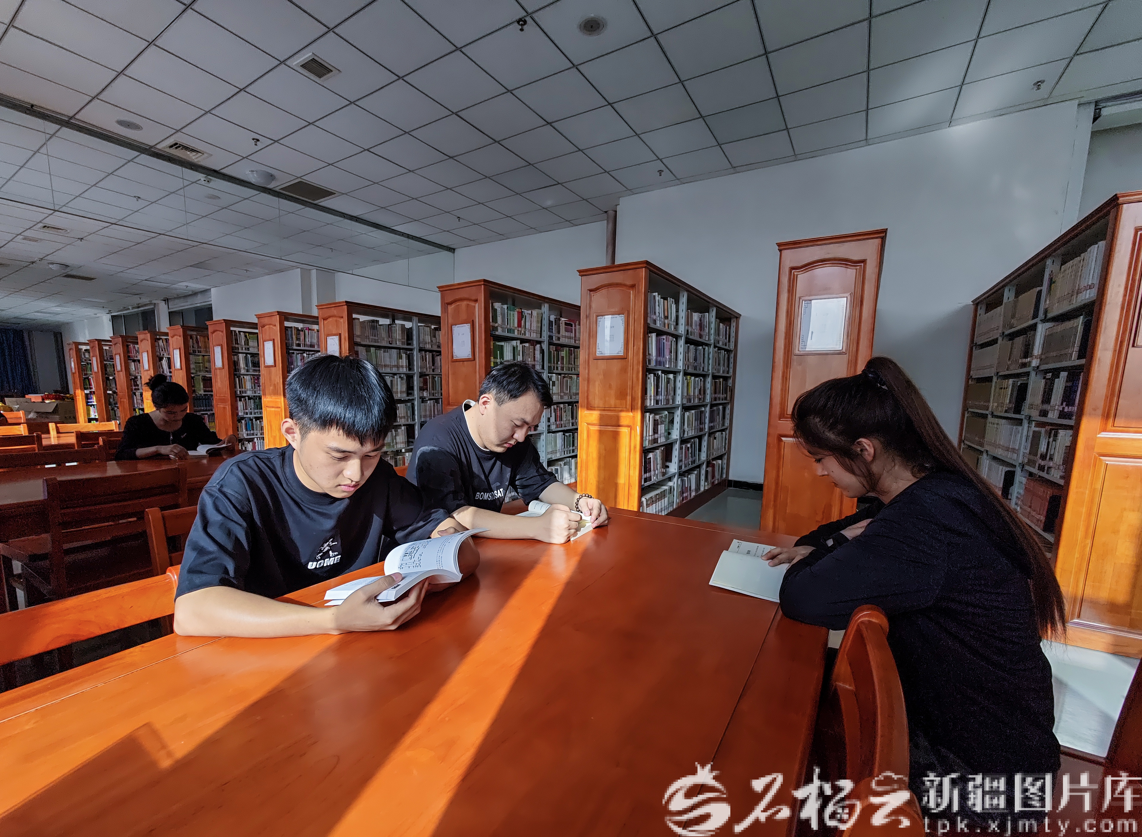 9月12日,在新疆和田学院图书馆,大学生正在看书。