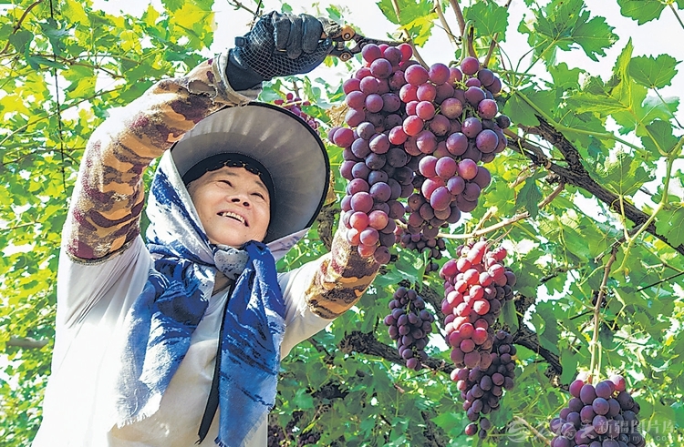 昌吉市种植户在采摘葡萄。何龙 摄