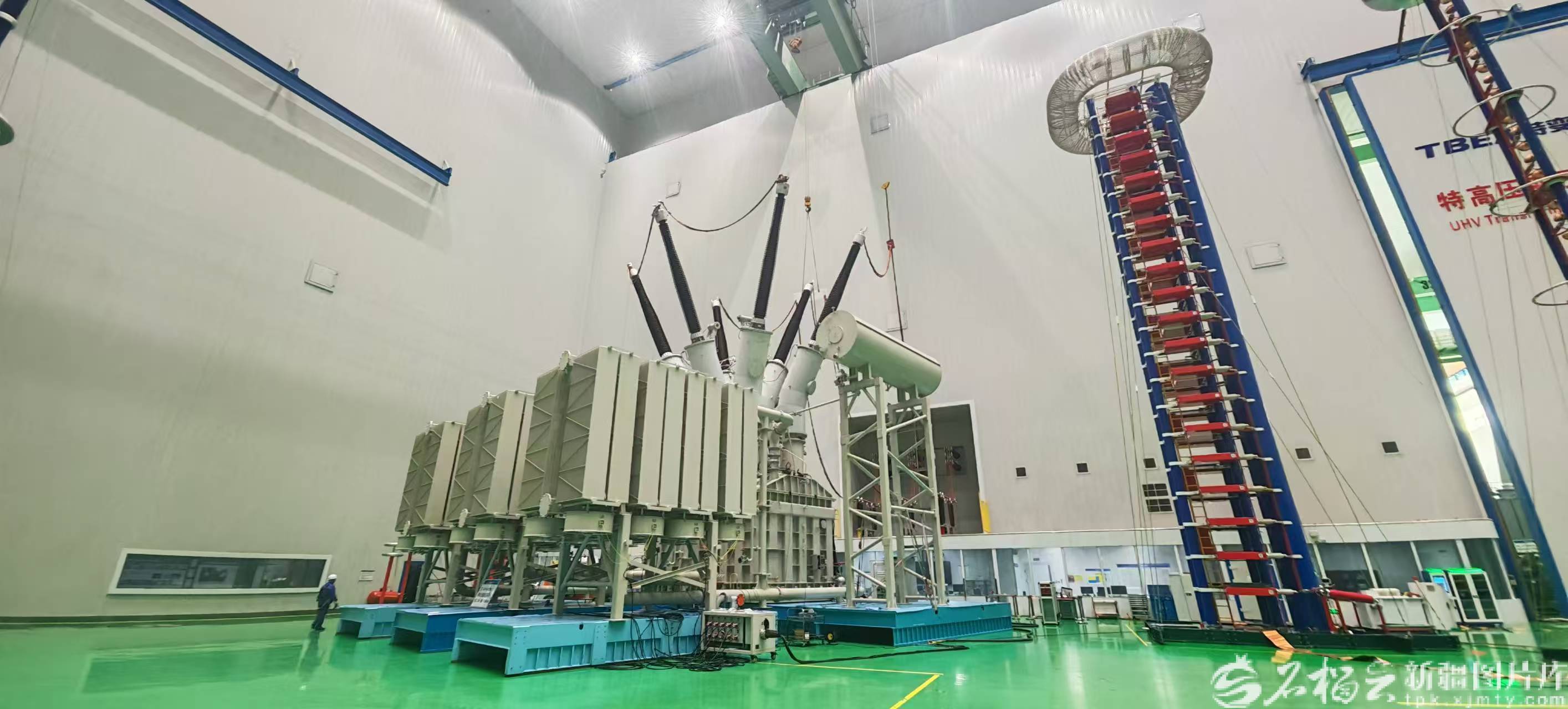 正在进行试验的400千伏三相油浸式限流电抗器。图/特变电工