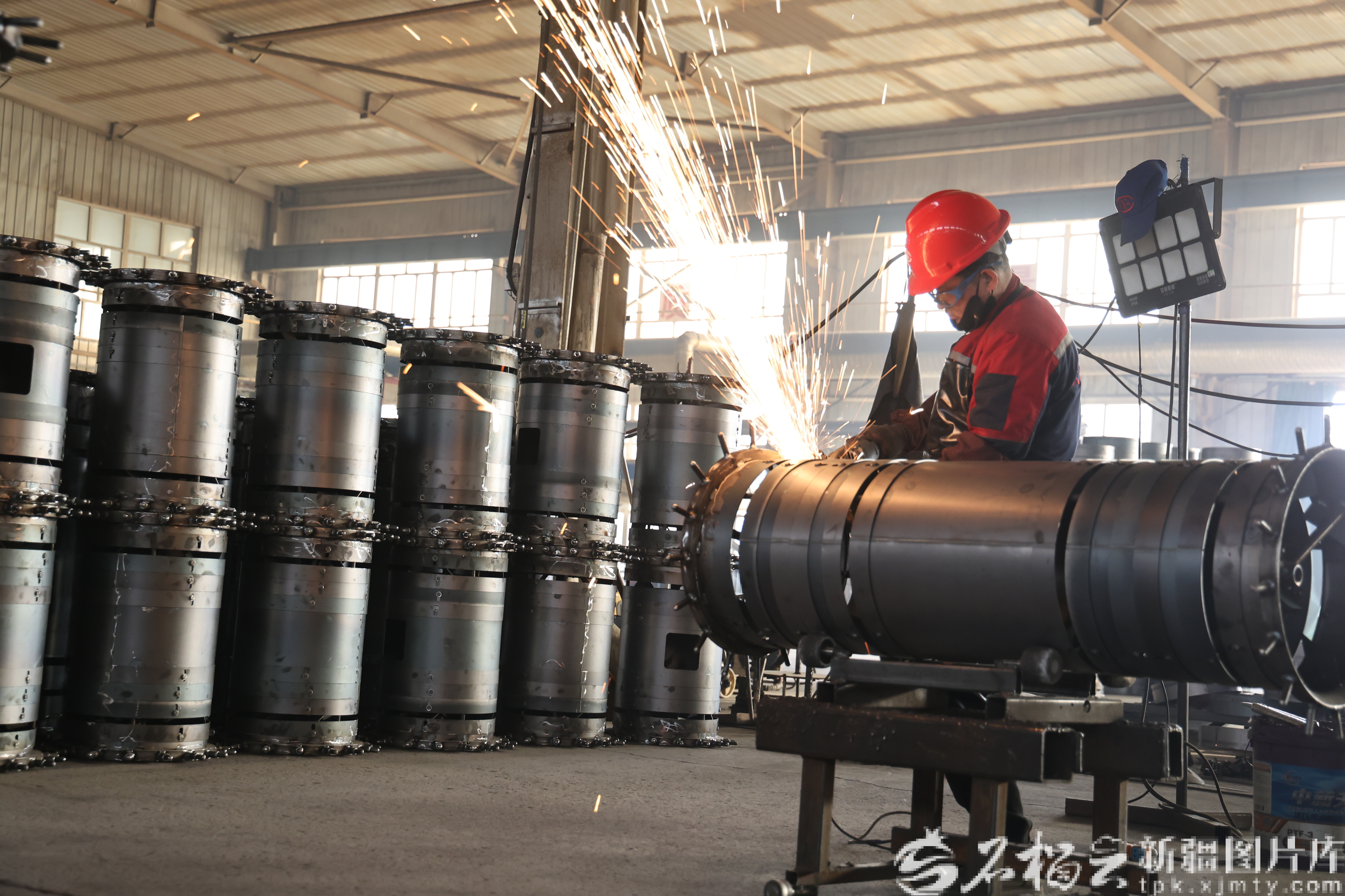 2月23日,新疆天诚农机具制造有限公司生产车间,工人在进行焊接作业。张效红 摄